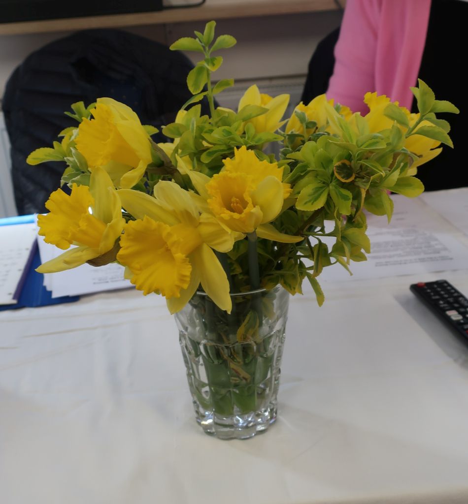 Secretary Julie Andrews welcomed 36 members and one visitor to the April meeting. Jackie was thanked for the flowers and coffee hostesses Nicky, Caroline and Tricia were also thanked. Along with Gill for running the sales table and Diane and Cynthia for the monthly raffle.