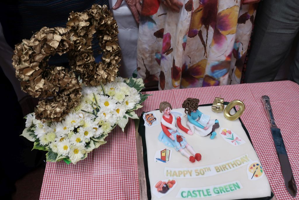 After weeks (or so it seemed) of warm sunny weather Friday 13 October was dull, chilly and rainy but the forty-one members and eight guests who made their way to The Lads’ Club were in high spirits because it was Castle Green WI’s 50th birthday.