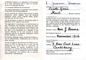I think that we can all agree with the sentiment expressed on the 1976 Membership Card that a WI should “develop a spirit of friendship, cooperation and initiative“.These ideals are still very much at the core of Castle Green WI today in 2017!