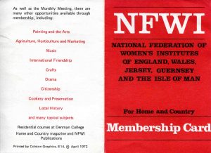 What may surprise some members, apart from the bright red colour of the card, is the rural nature of the WI in the 1970’s. At that time the WI is described as an “association of women in the rural community.” which is “open to country women of all ages and interests”.This is so very different from the 21st century when many new WI’s are formed through social media in very urban areas in towns and big cities.