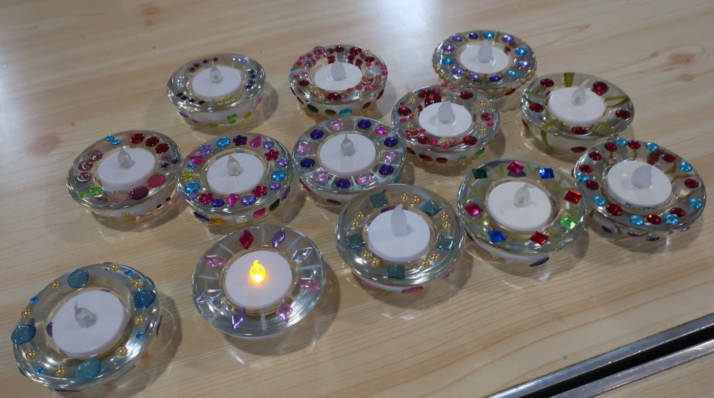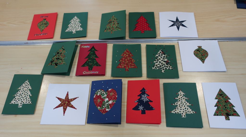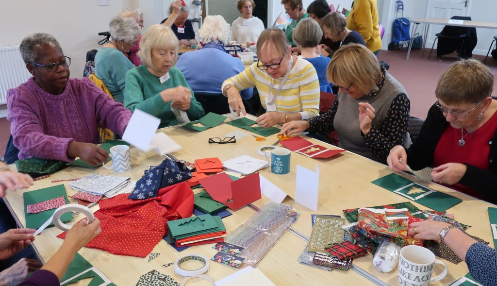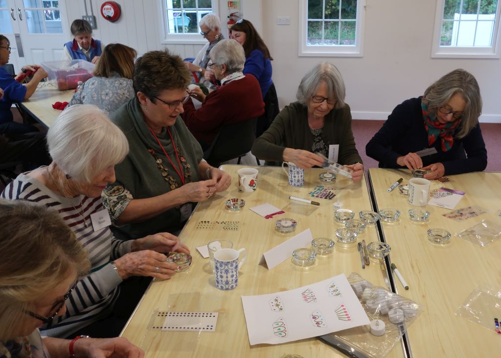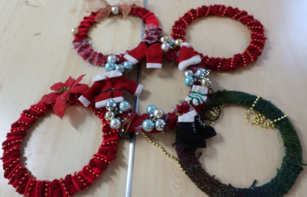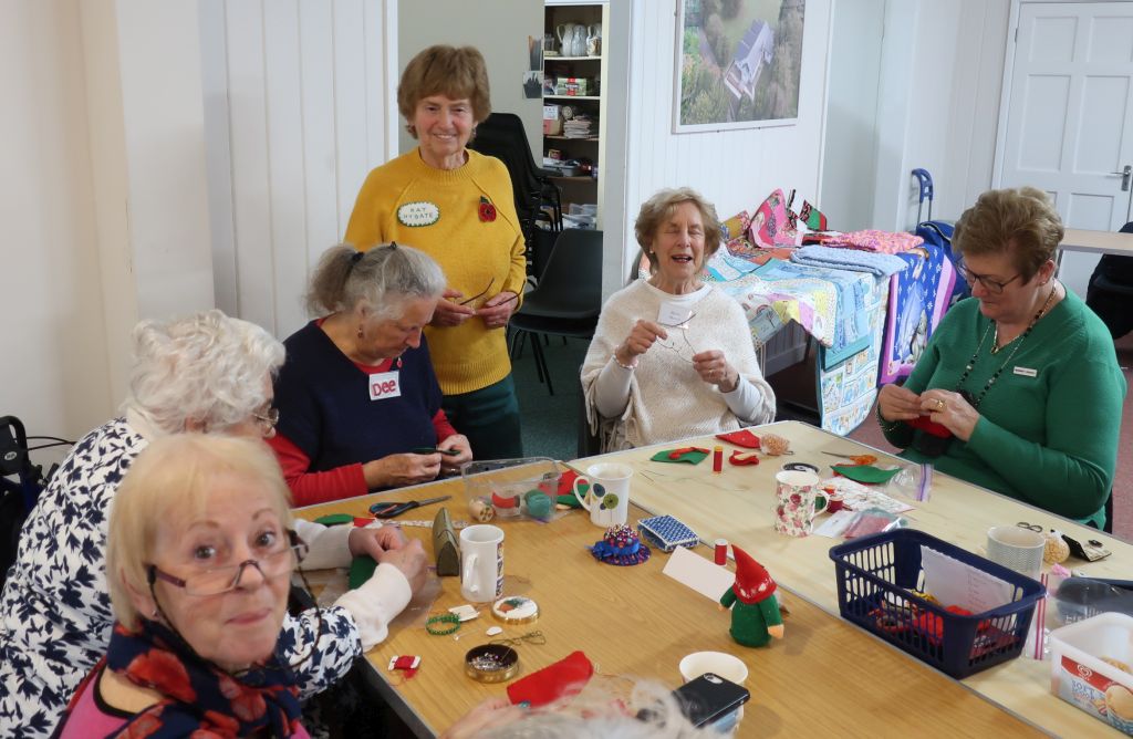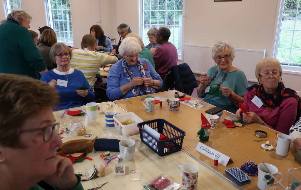 After coffee, biscuits/cakes and a chat, we settled down to our chosen Christmas craft activity. Decorating a tealight holder with Julie A, making a Christmas elf with Kay, making a Christmas card with Diane or a season wreath with Mary W.