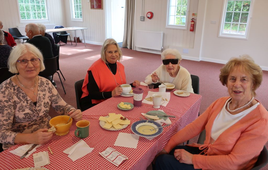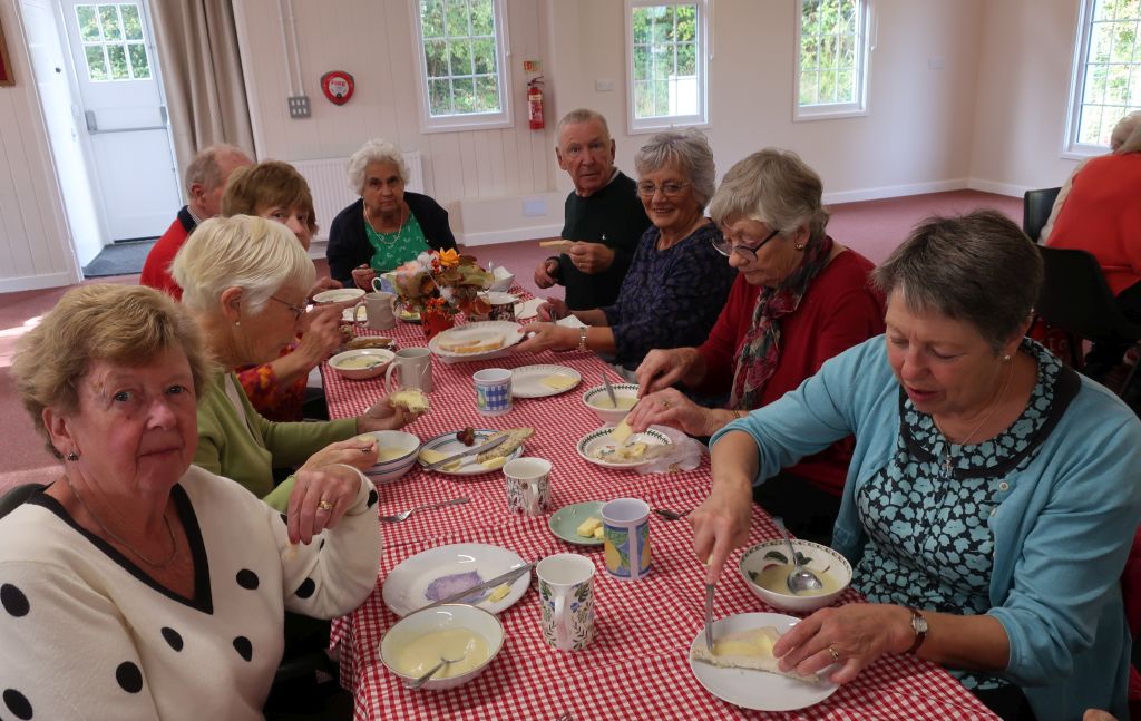 On a very mild October day 32 members and guests arrived at the Lads’ club at 12 noon. They sat around 2 long tables to enjoy a soup, bread and cheese lunch followed by a mug of tea or coffee.