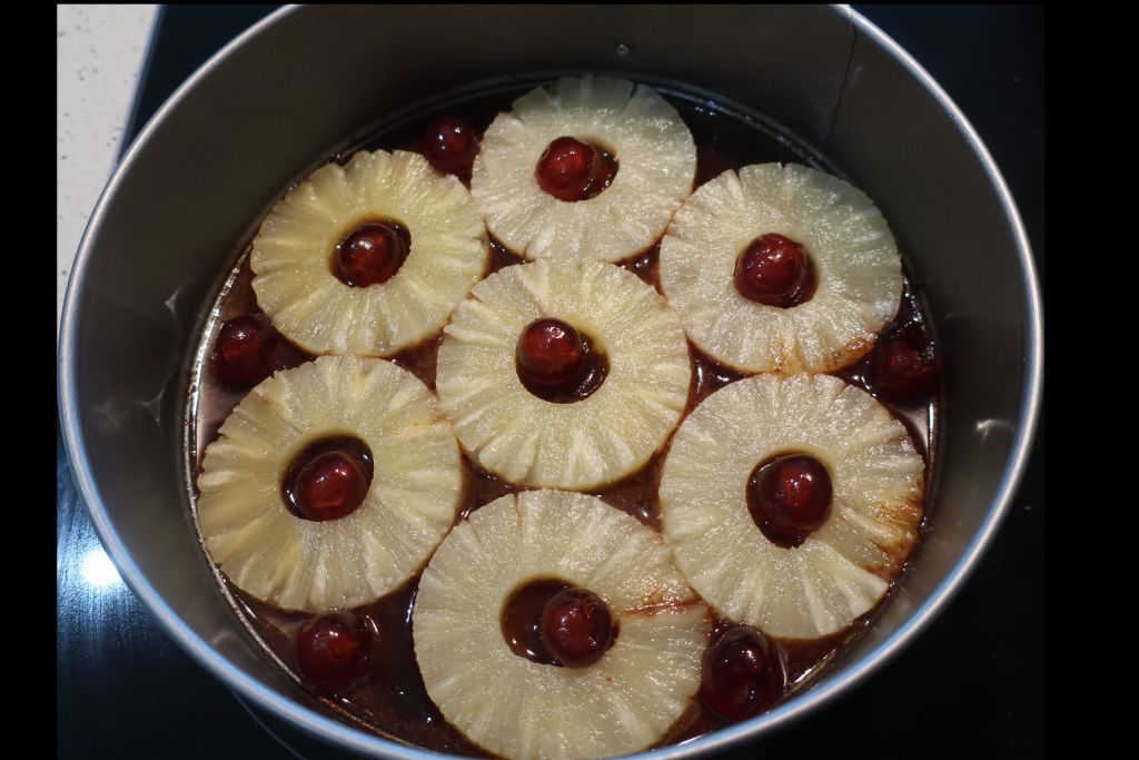 - Melt the butter in the base of the cake tin add and stir in the brown sugar until dissolved
